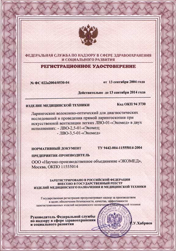 Единственный в мире ларингоскоп, сертифицированный и разрешенный как для диагностических целей (с питанием от сети 220 В и встроенного аккумулятора), так и для хирургии, реанимации, анестезии с питанием от батареек и герметизированной ручкой.
